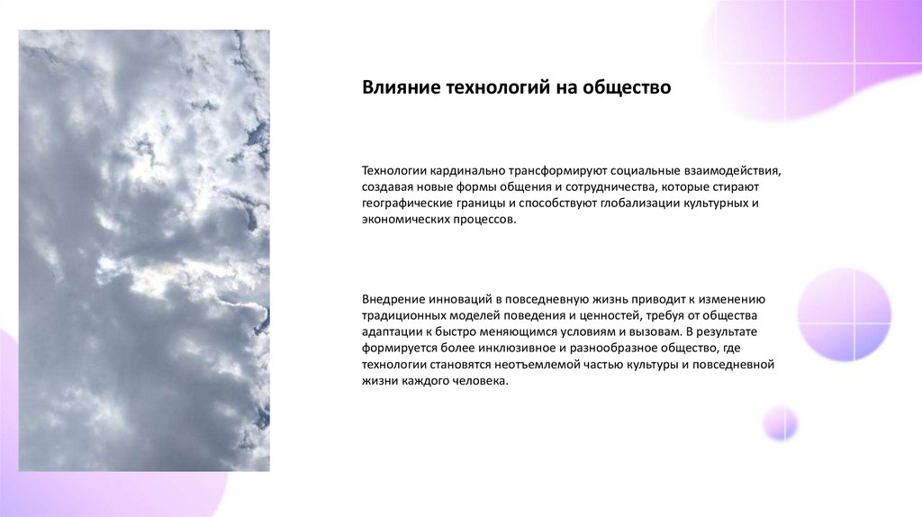 Влияние технологий на обществоТехнологии кардинально трансформируют социальные взаимодействия,