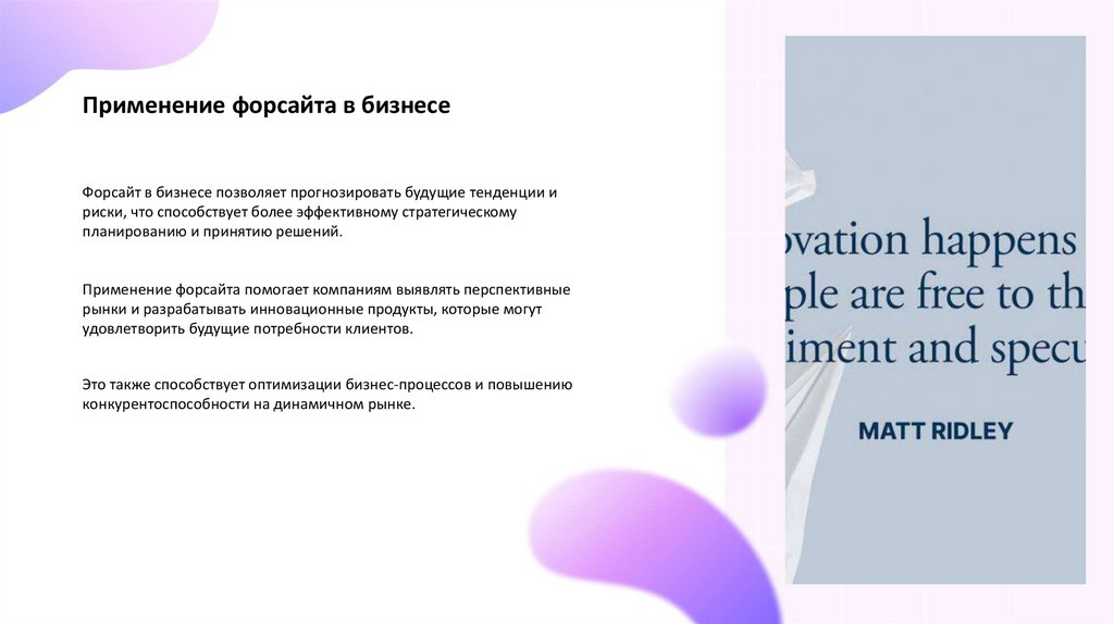 Применение форсайта в бизнесеФорсайт в бизнесе позволяет прогнозировать будущие тенденции и