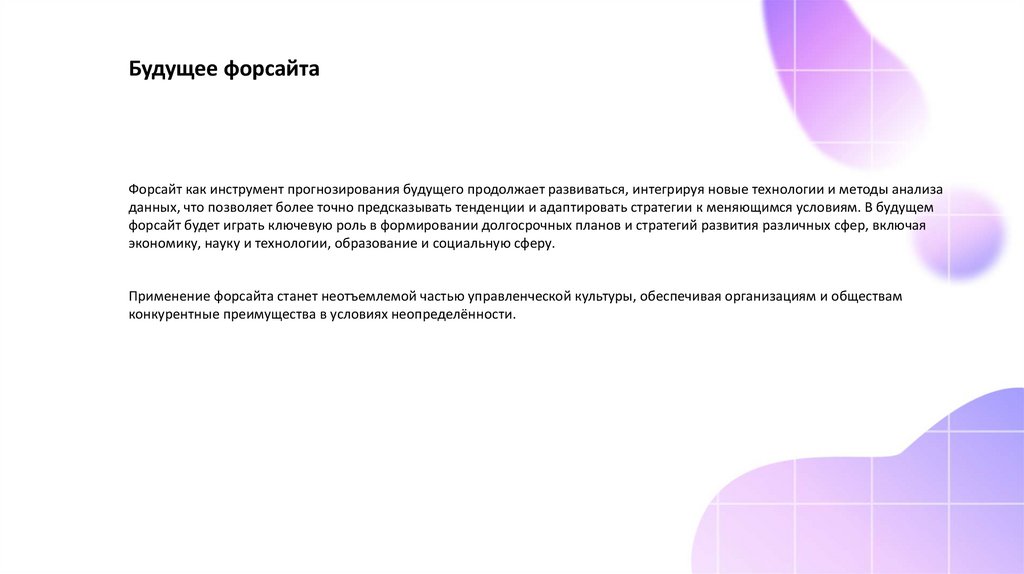 Будущее форсайтаФорсайт как инструмент прогнозирования будущего продолжает развиваться, интегрируя новые технологии и методы анализа
