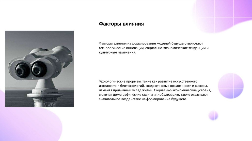 Факторы влиянияФакторы влияния на формирование моделей будущего включают