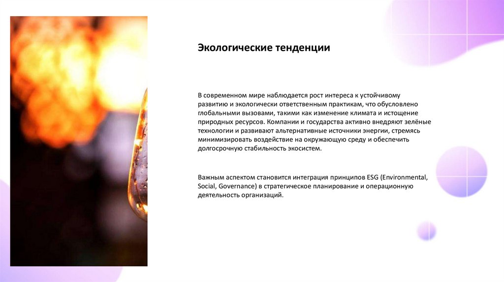 Экологические тенденцииВ современном мире наблюдается рост интереса к устойчивому
