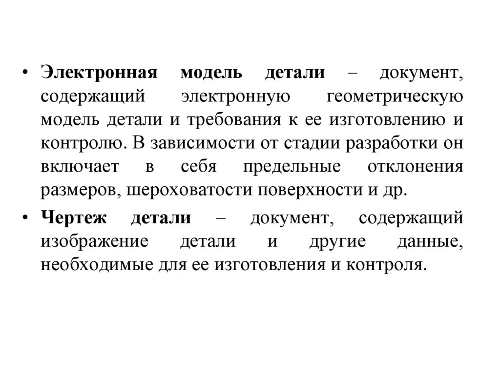 • Электронная модель детали – документ,содержащий