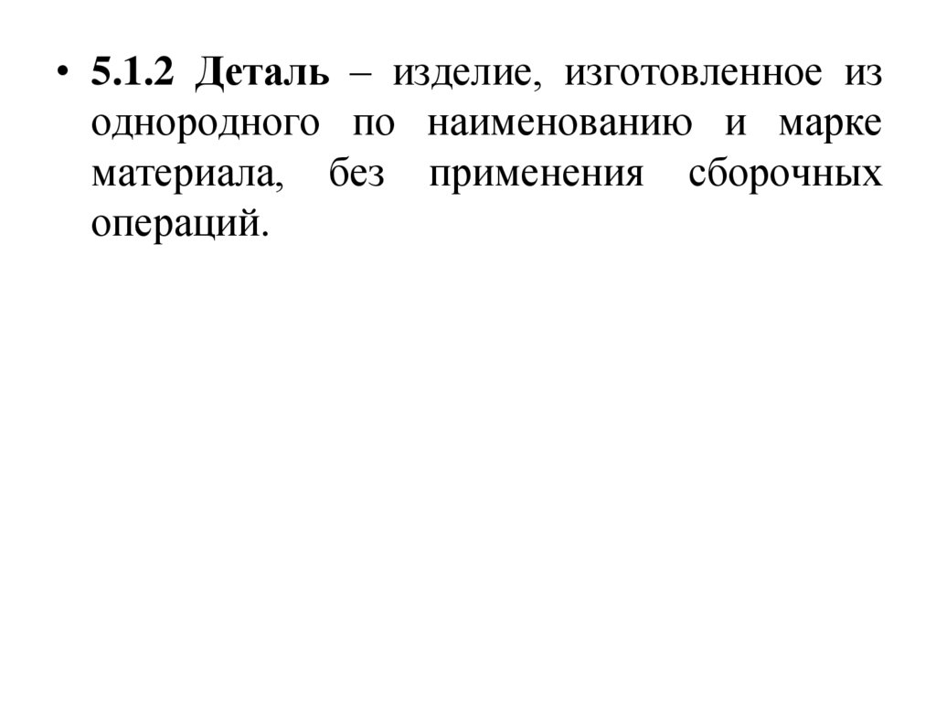 • 5.1.2 Деталь – изделие, изготовленное изоднородного по наименованию и марке