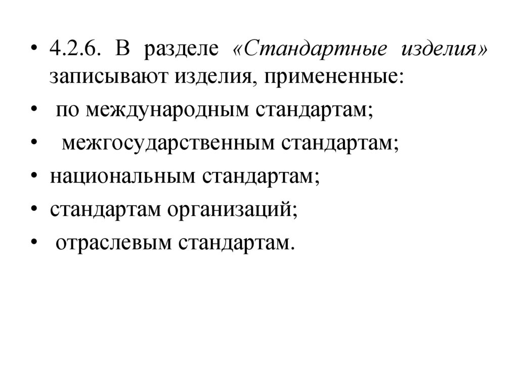 • 4.2.6. В разделе «Стандартные изделия»записывают изделия, примененные: