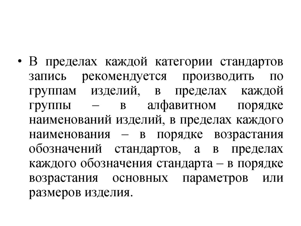 • В пределах каждой категории стандартовзапись рекомендуется производить по
