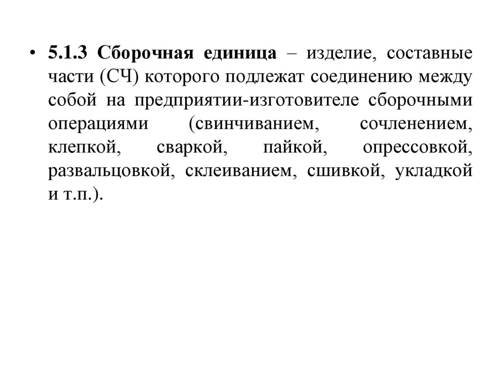 • 5.1.3 Сборочная единица – изделие, составныечасти (СЧ) которого подлежат соединению между