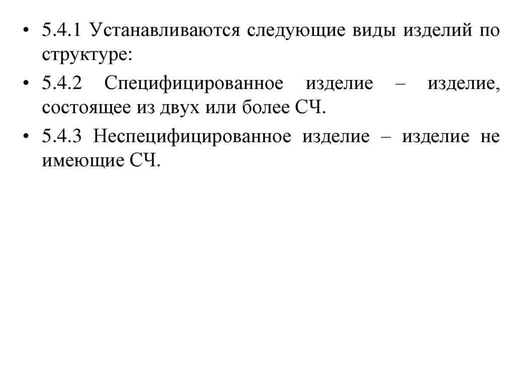 • 5.4.1 Устанавливаются следующие виды изделий поструктуре: