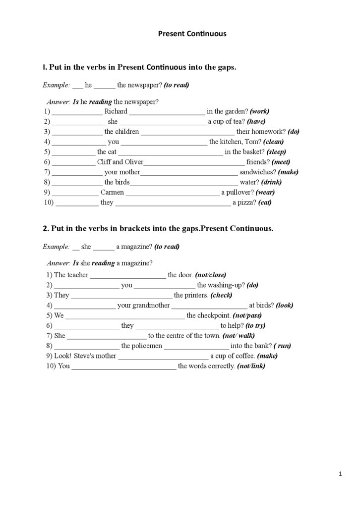 Present ContinuousI. Put in the verbs in Present Continuous into the gaps.