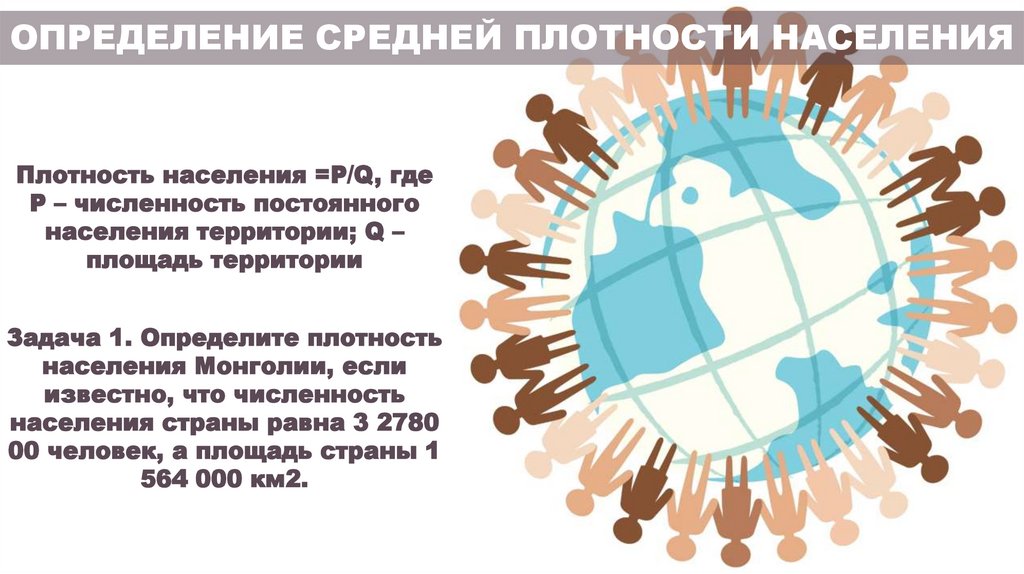 ОПРЕДЕЛЕНИЕ СРЕДНЕЙ ПЛОТНОСТИ НАСЕЛЕНИЯПлотность населения =P/Q, где