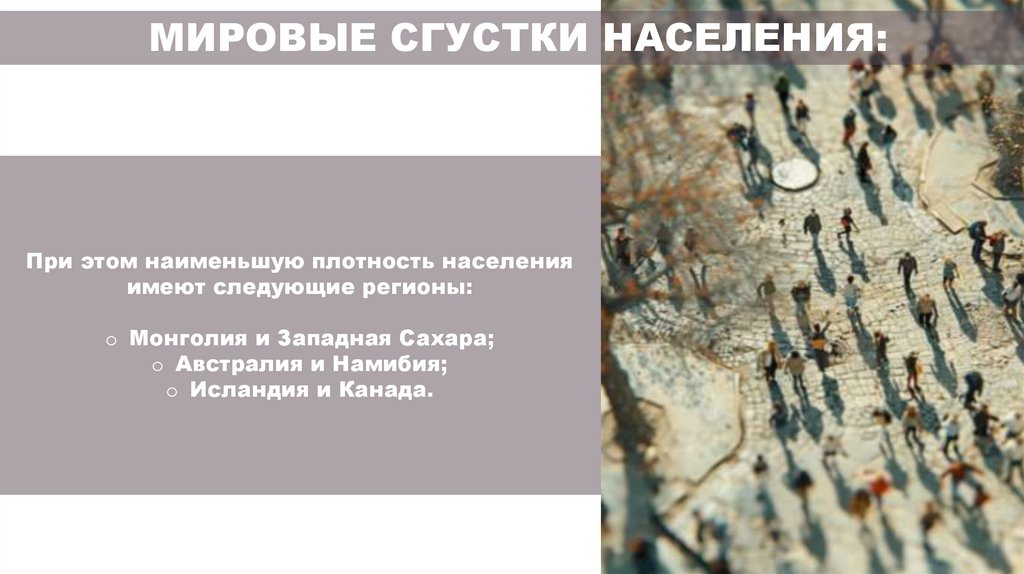 МИРОВЫЕ СГУСТКИ НАСЕЛЕНИЯ:При этом наименьшую плотность населения