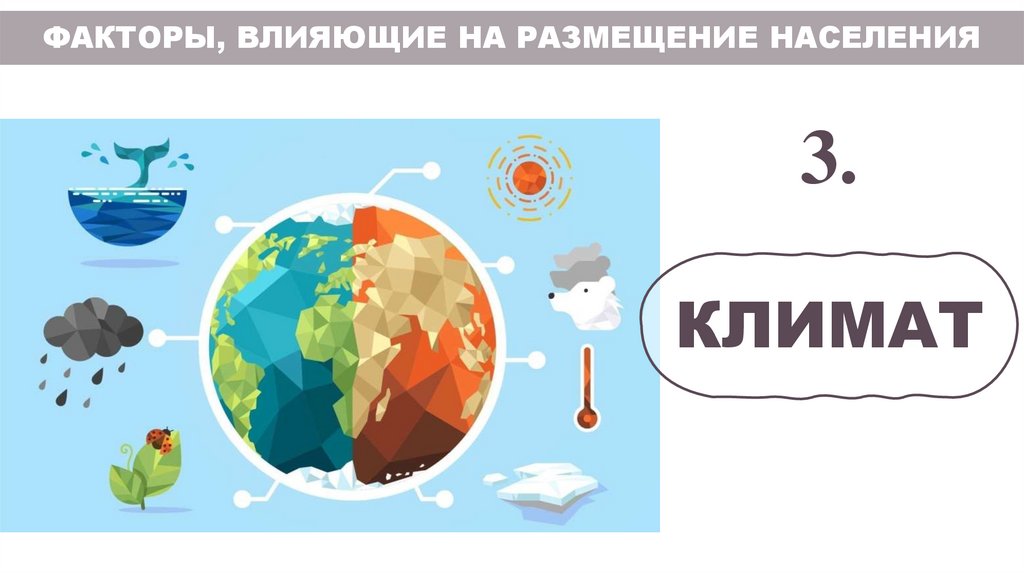 ФАКТОРЫ, ВЛИЯЮЩИЕ НА РАЗМЕЩЕНИЕ НАСЕЛЕНИЯ3.