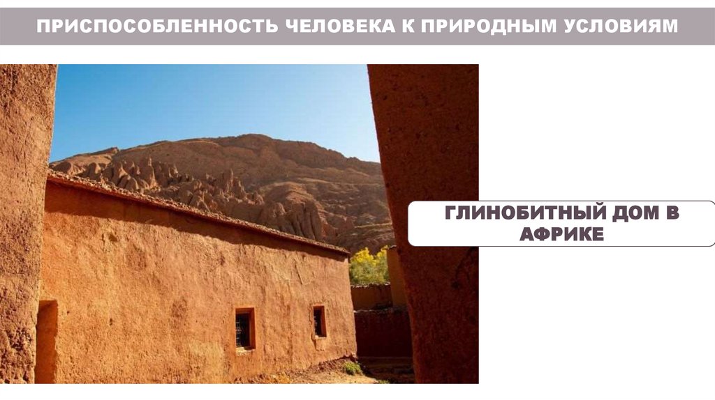 ПРИСПОСОБЛЕННОСТЬ ЧЕЛОВЕКА К ПРИРОДНЫМ УСЛОВИЯМГЛИНОБИТНЫЙ ДОМ В