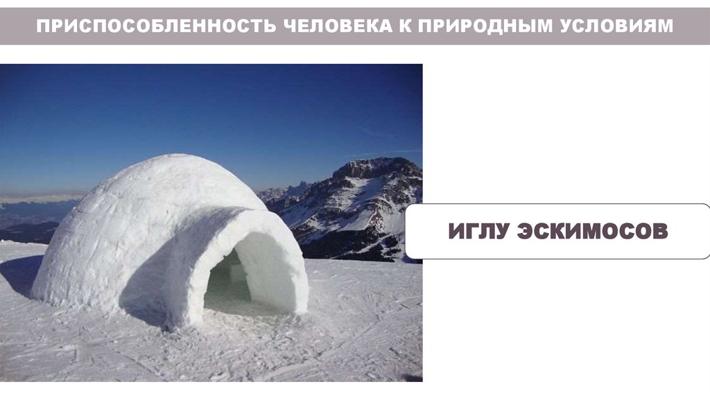 ПРИСПОСОБЛЕННОСТЬ ЧЕЛОВЕКА К ПРИРОДНЫМ УСЛОВИЯМИГЛУ ЭСКИМОСОВ