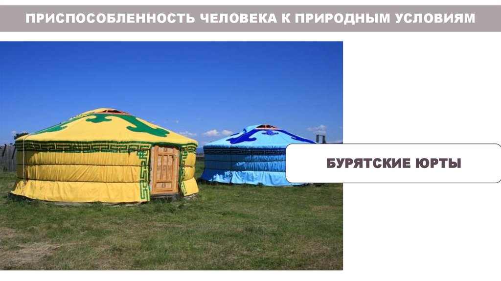 ПРИСПОСОБЛЕННОСТЬ ЧЕЛОВЕКА К ПРИРОДНЫМ УСЛОВИЯМБУРЯТСКИЕ ЮРТЫ