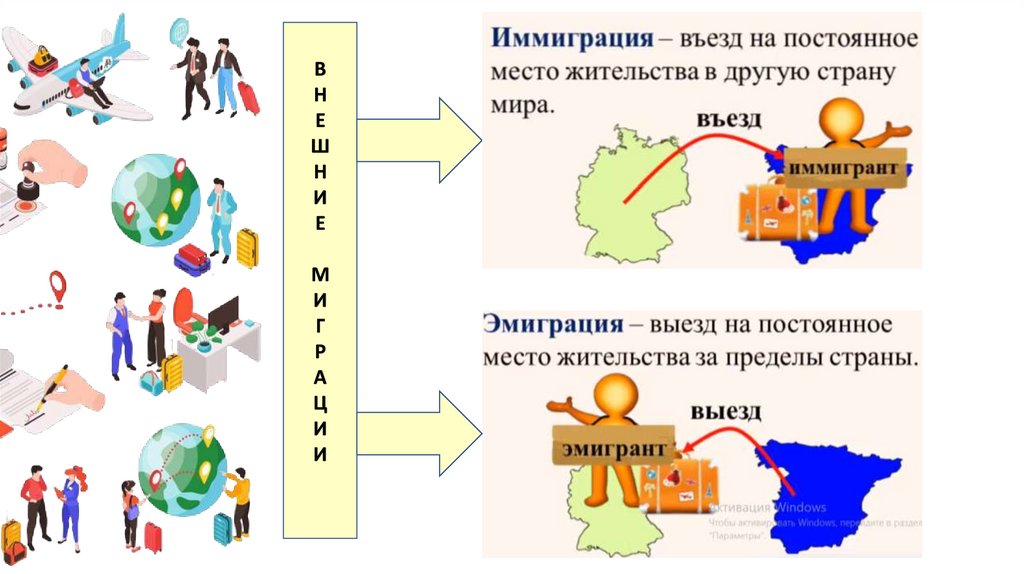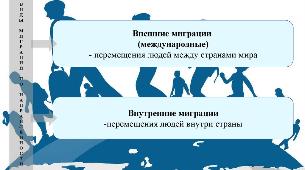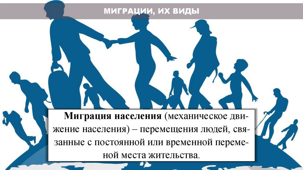 МИГРАЦИИ, ИХ ВИДЫМиграция населения (механическое движение населения) – перемещения людей, связанные с постоянной или временной переменой места жительства.