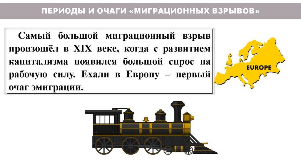 ПЕРИОДЫ И ОЧАГИ «МИГРАЦИОННЫХ ВЗРЫВОВ»Самый большой миграционный взрыв