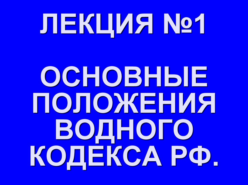 ЛЕКЦИЯ №1 ОСНОВНЫЕ ПОЛОЖЕНИЯ ВОДНОГО КОДЕКСА РФ.