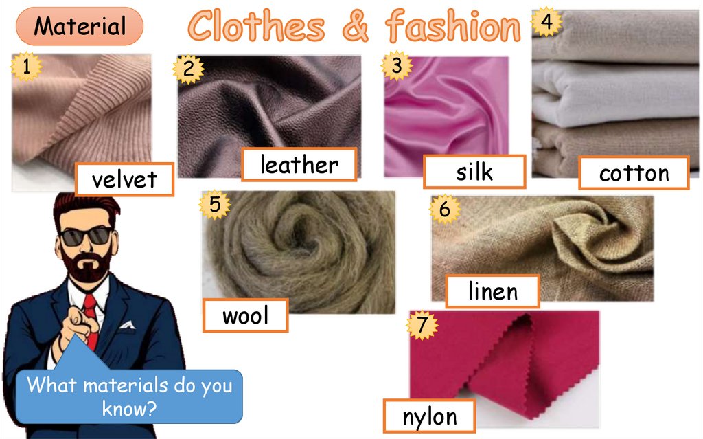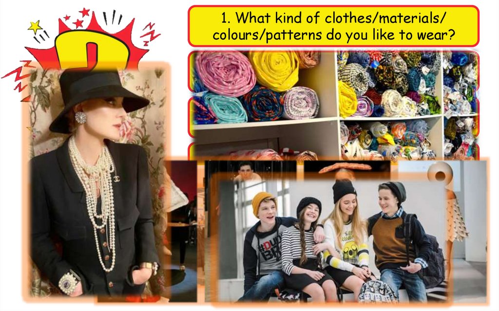 1. What kind of clothes/materials/colours/patterns do you like to wear?