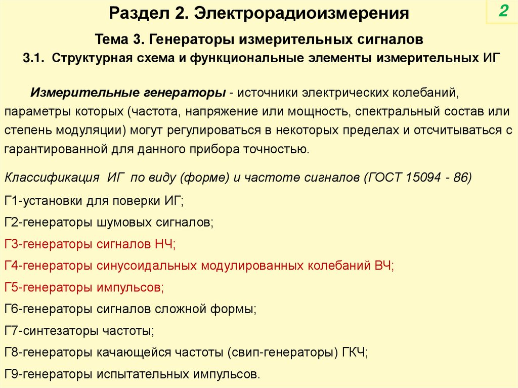 Тема 3. Генераторы измерительных сигналовЛекция 5