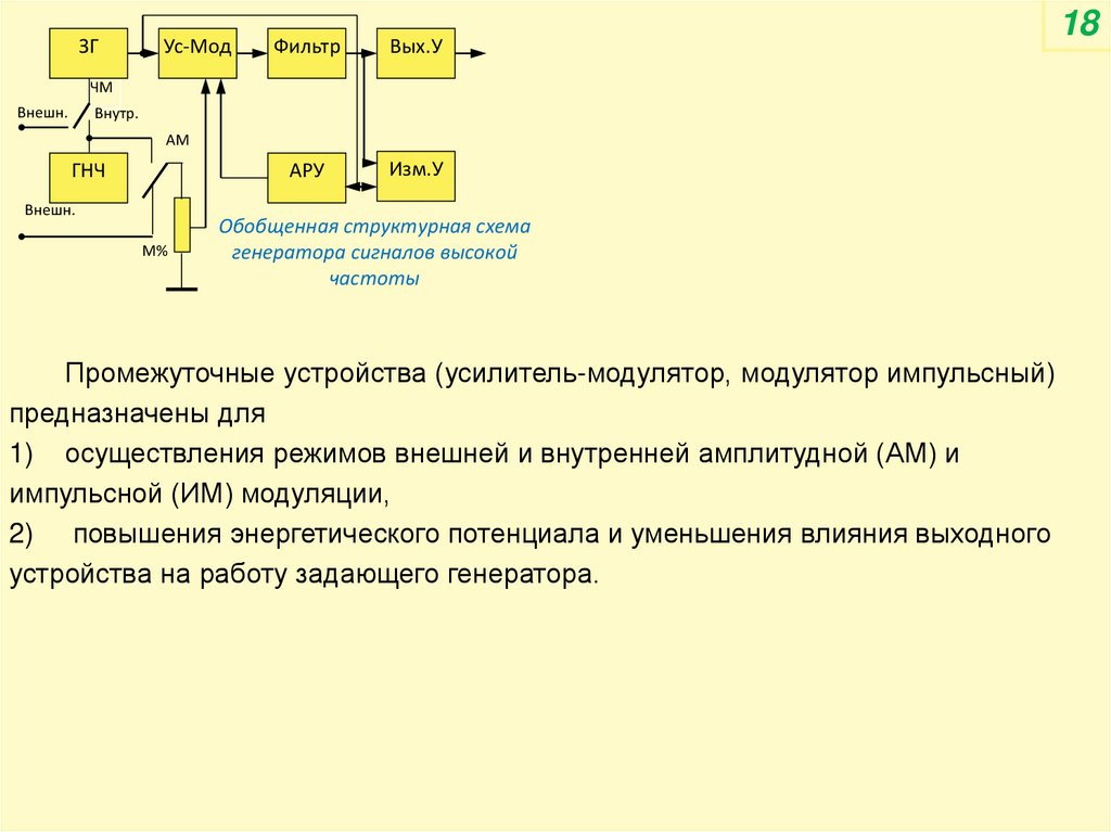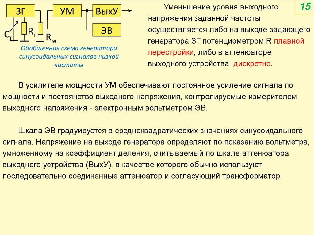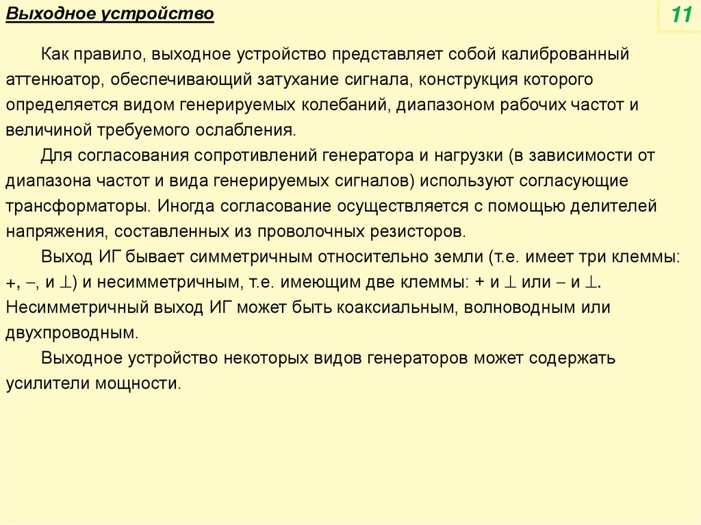 Выходное устройство, как правило, представляет собой ВЧ аттенюатор.