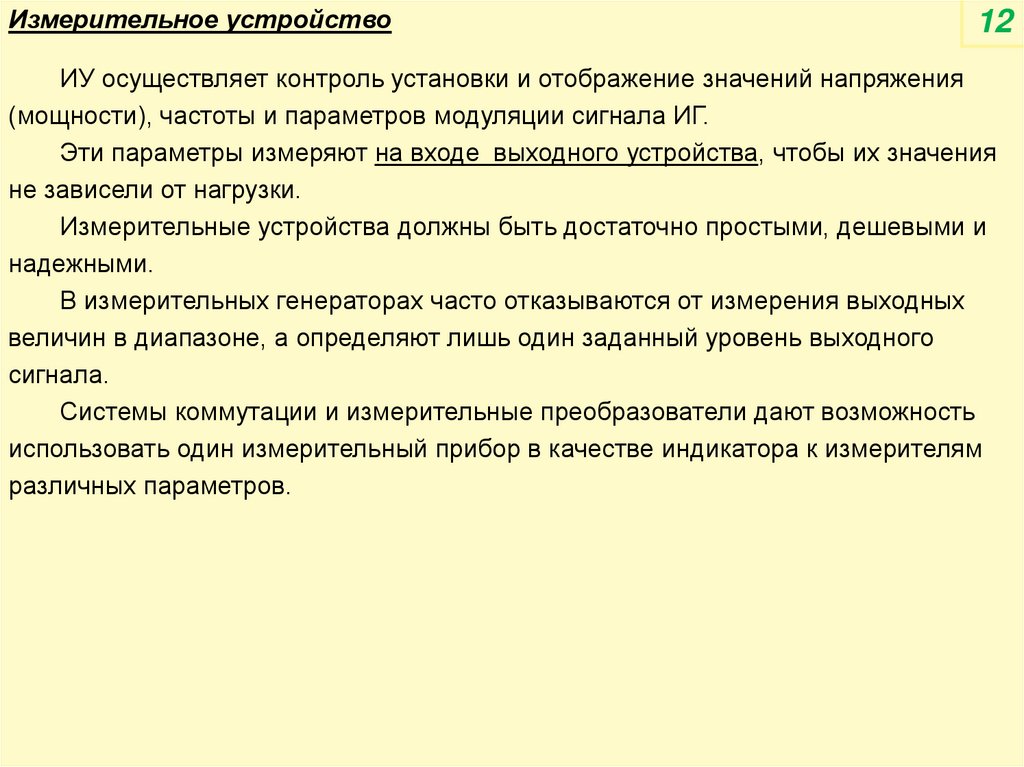 2) изменения выходного напряжения (мощности) измерительного сигнала,
