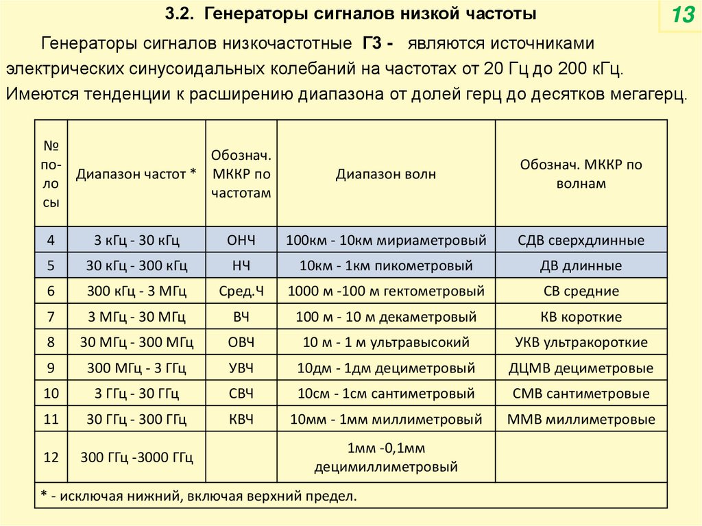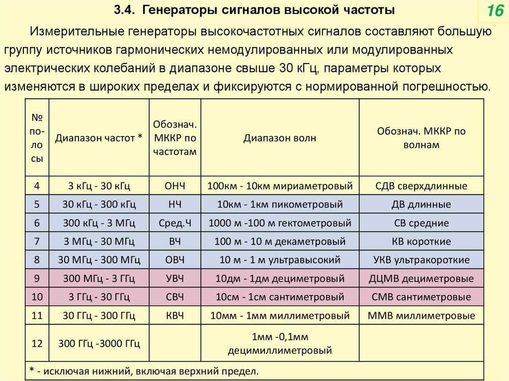 1. Основная - диапазон перекрываемых генератором частот, т.е. такой частотный