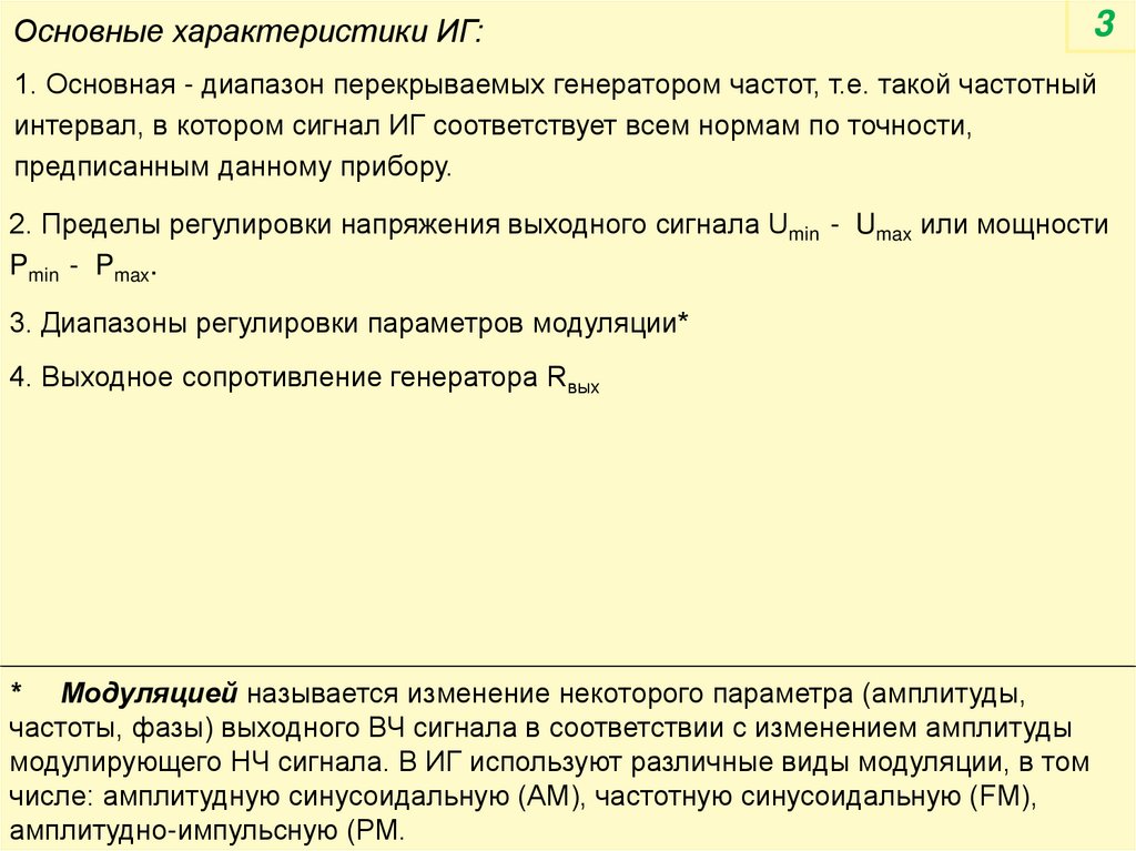 модулирующего НЧ сигнала. В ИГ используют различные виды модуляции, в том