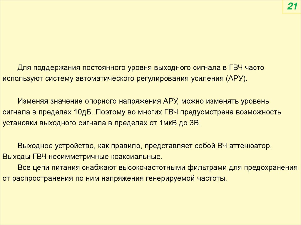 21Для поддержания постоянного уровня выходного сигнала в ГВЧ часто