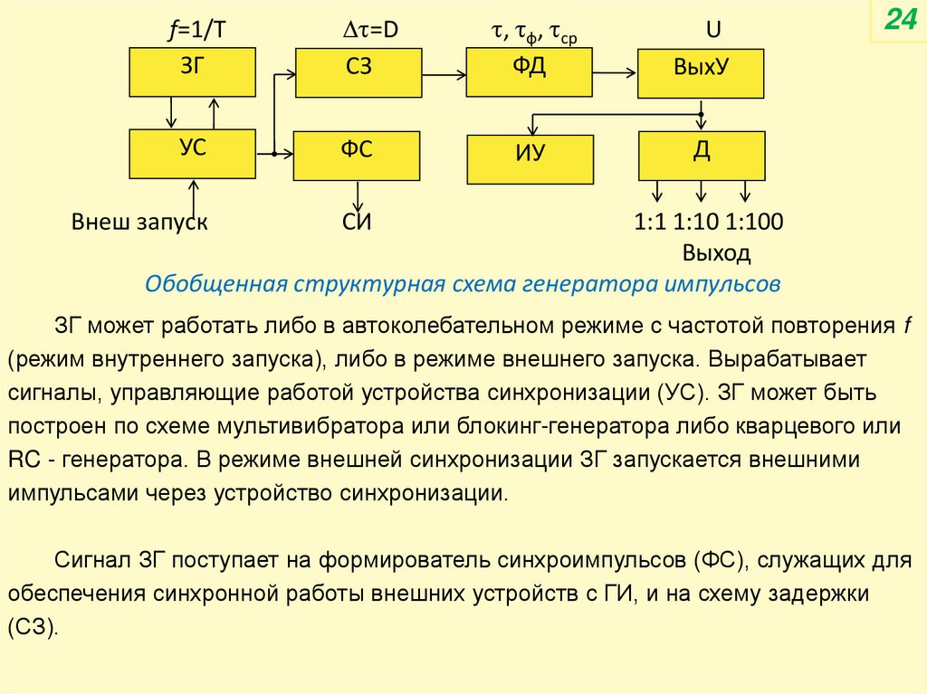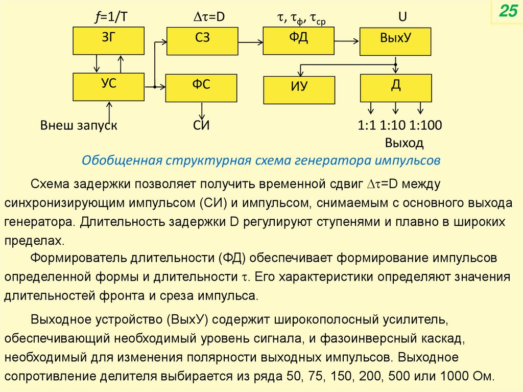 обеспечения синхронной работы внешних устройств с ГИ, и на схему задержки