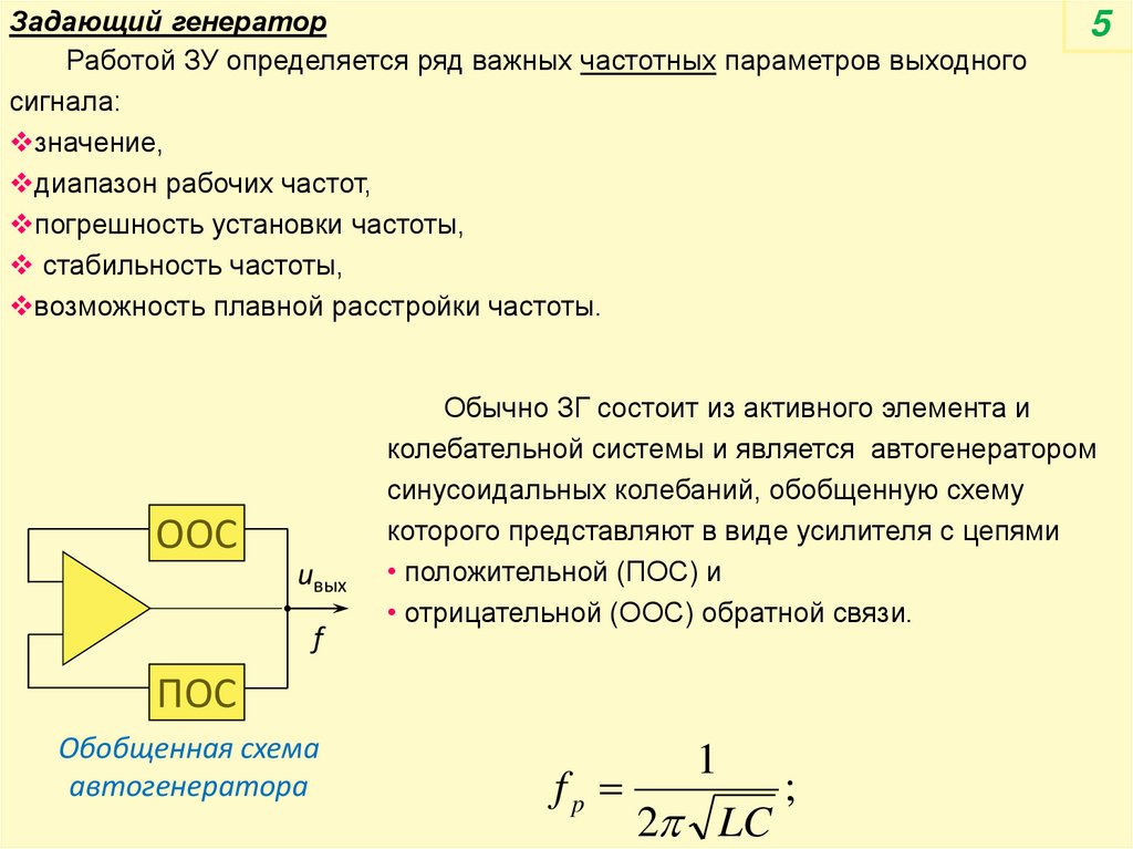Задающий генераторРаботой ЗУ определяется ряд важных частотных параметров выходного