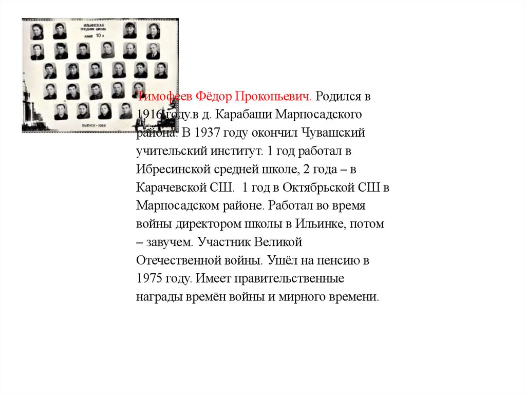 Тимофеев Фёдор Прокопьевич. Родился в1916 году.в д. Карабаши Марпосадского