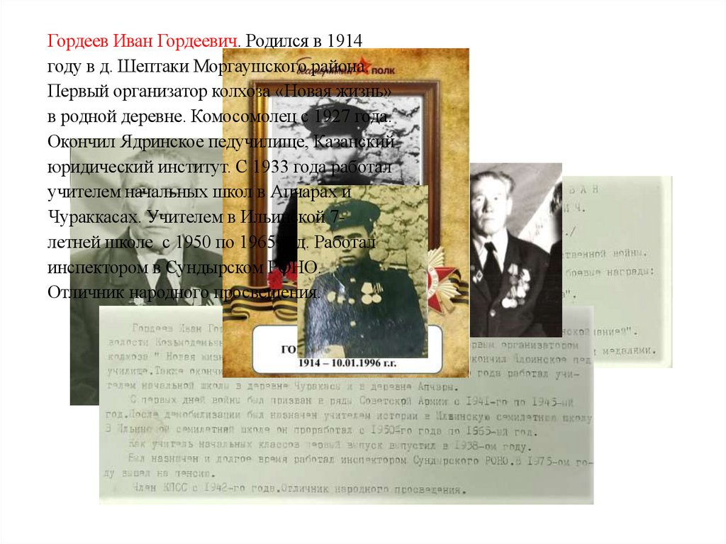 Гордеев Иван Гордеевич. Родился в 1914году в д. Шептаки Моргаушского района.