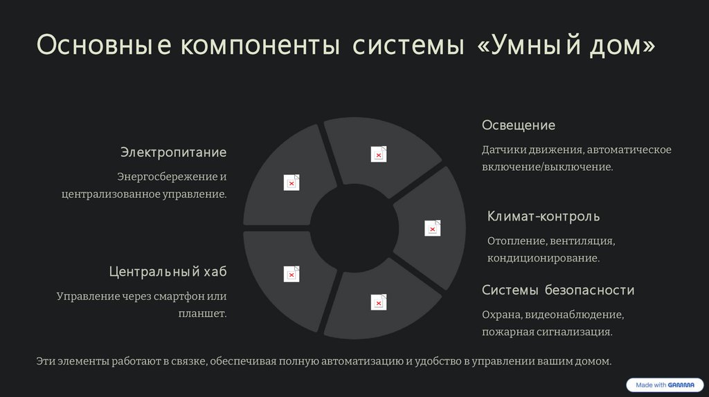 Эти элементы работают в связке, обеспечивая полную автоматизацию и удобство в управлении вашим домом.