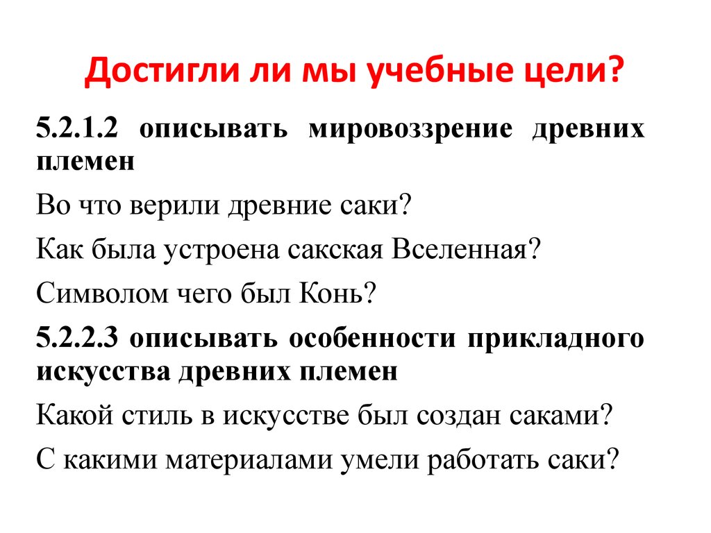 Достигли ли мы учебные цели?5.2.1.2 описывать мировоззрение древних
