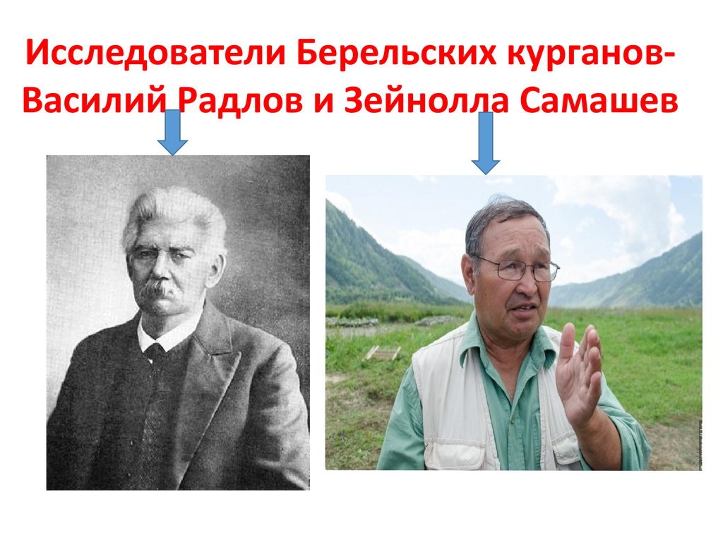 Исследователи Берельских кургановВасилий Радлов и Зейнолла Самашев5.