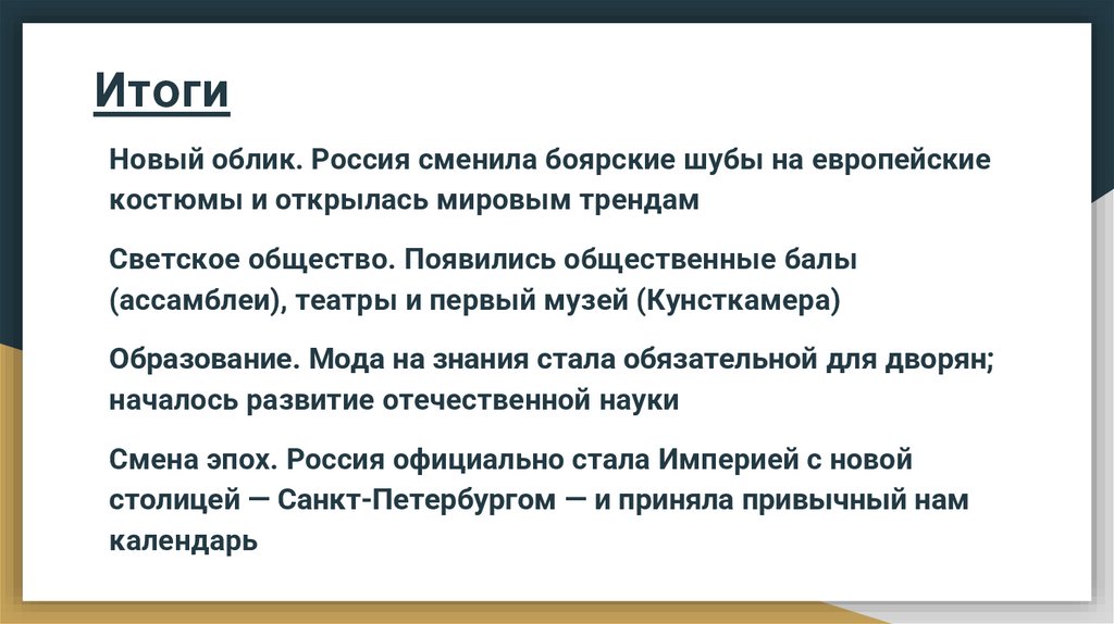 ИтогиНовый облик. Россия сменила боярские шубы на европейские
