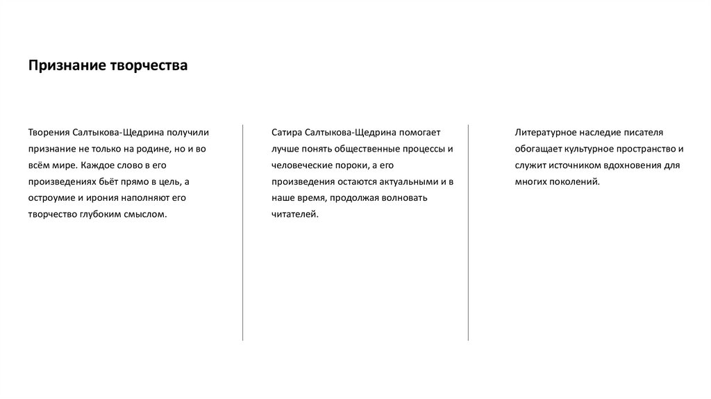 Признание творчестваТворения Салтыкова-Щедрина получили