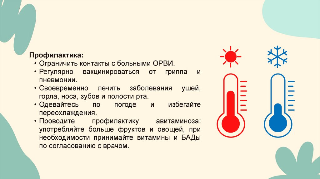 Профилактика:• Ограничение посещения публичных мест
