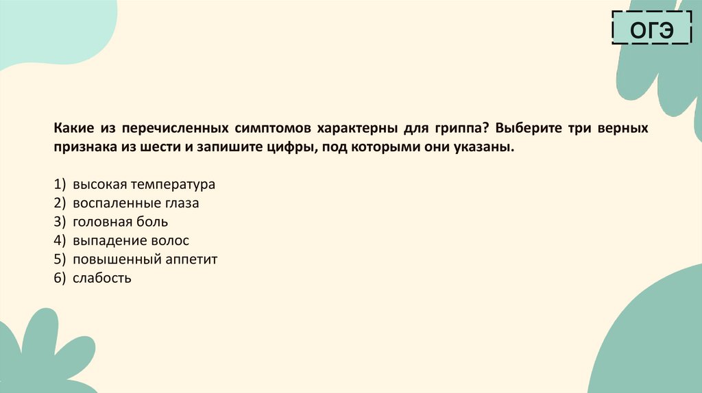 - На основе описанных симптомов, как вы