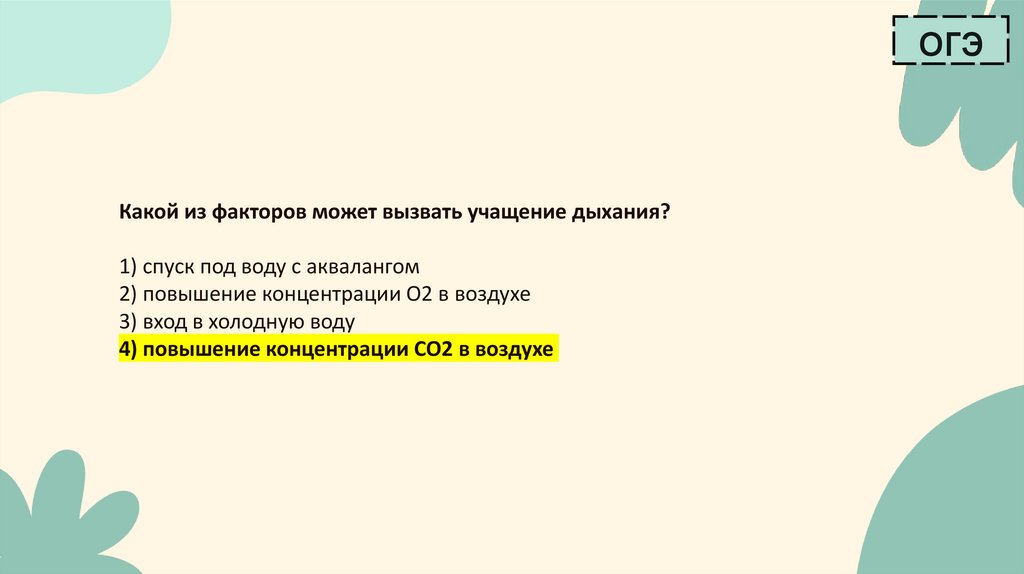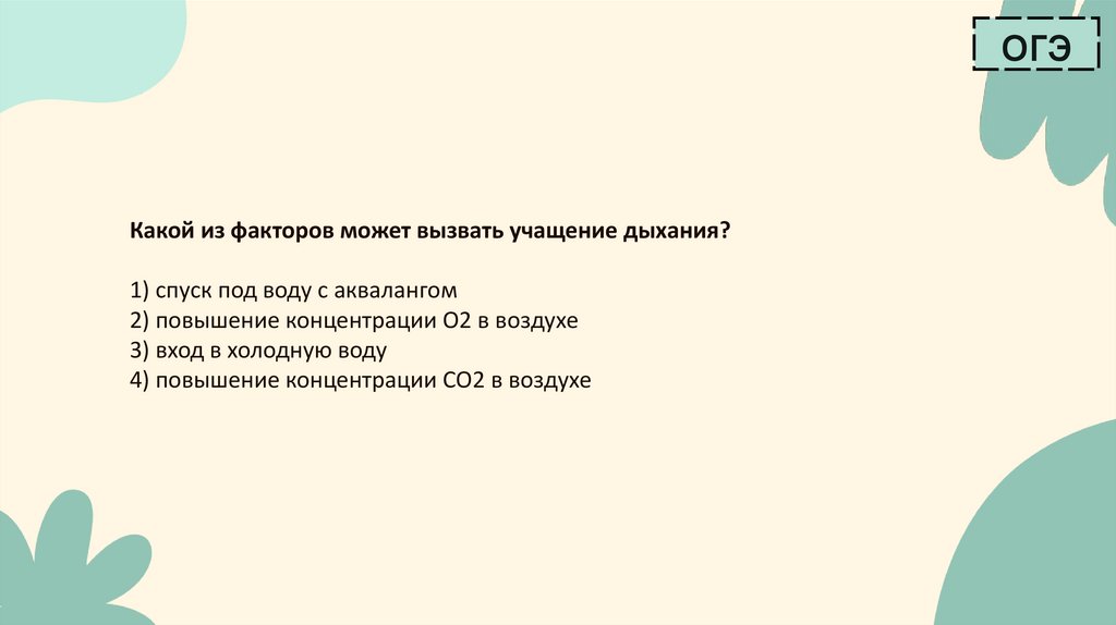 огэКакой из факторов может вызвать учащение дыхания?