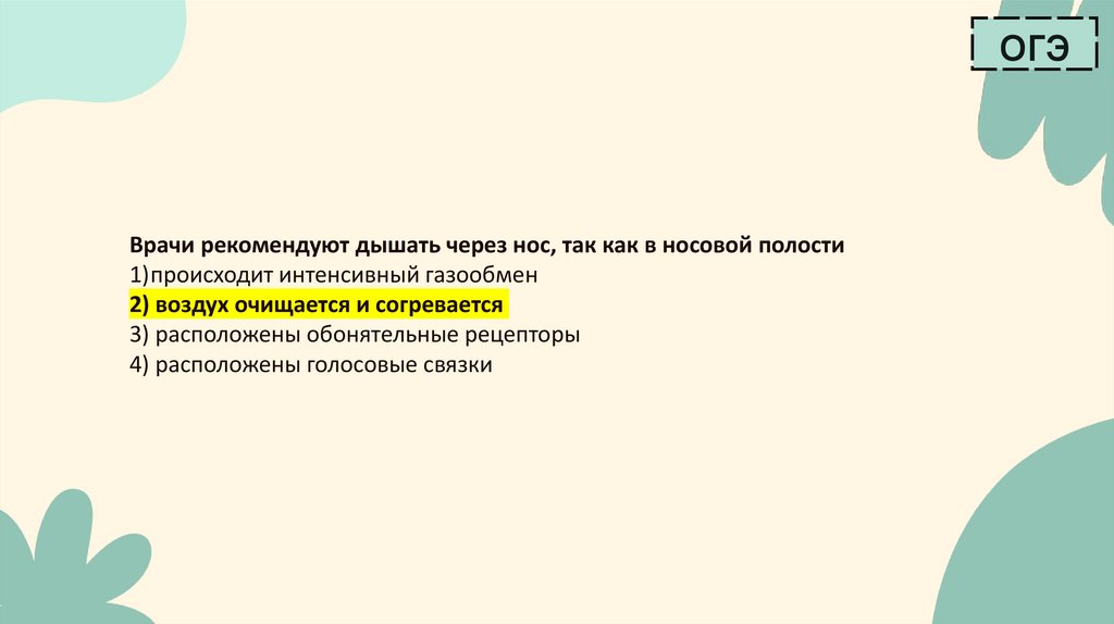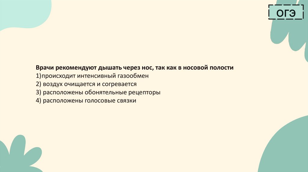 огэВрачи рекомендуют дышать через нос, так как в носовой полости