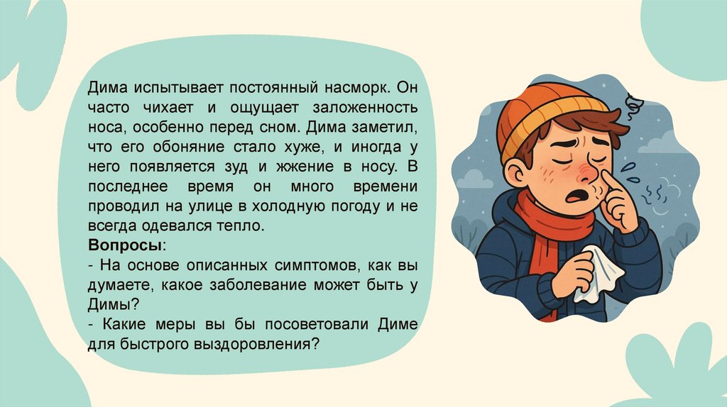 Дима испытывает постоянный насморк. Ончасто чихает и ощущает заложенность