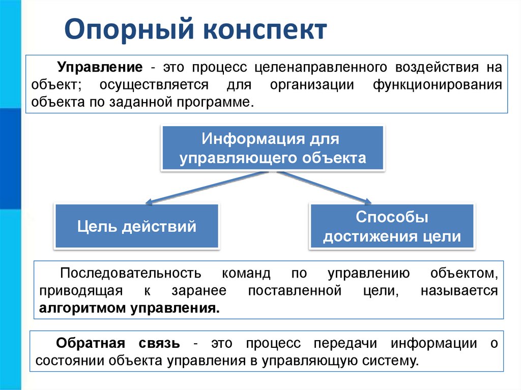 Опорный конспектУправление - это процесс целенаправленного воздействия на