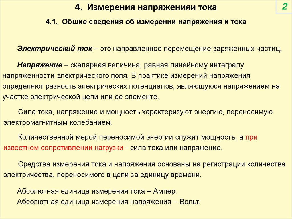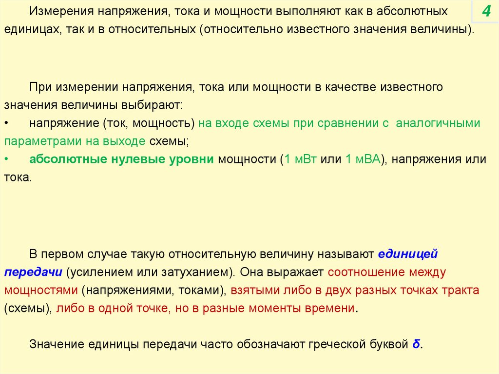 Измерения напряжения, тока и мощности выполняют как в абсолютных4