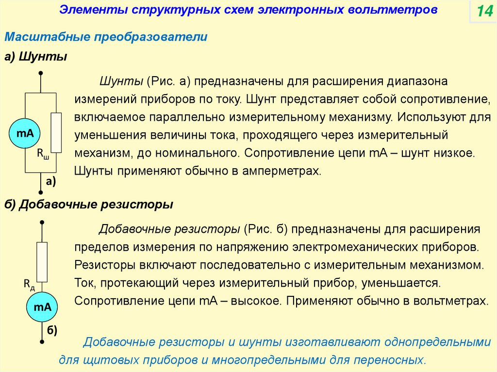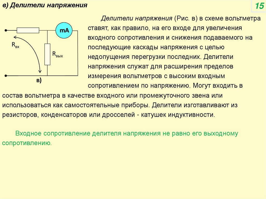 В качестве преобразователей в вольтметрах наиболее часто используют