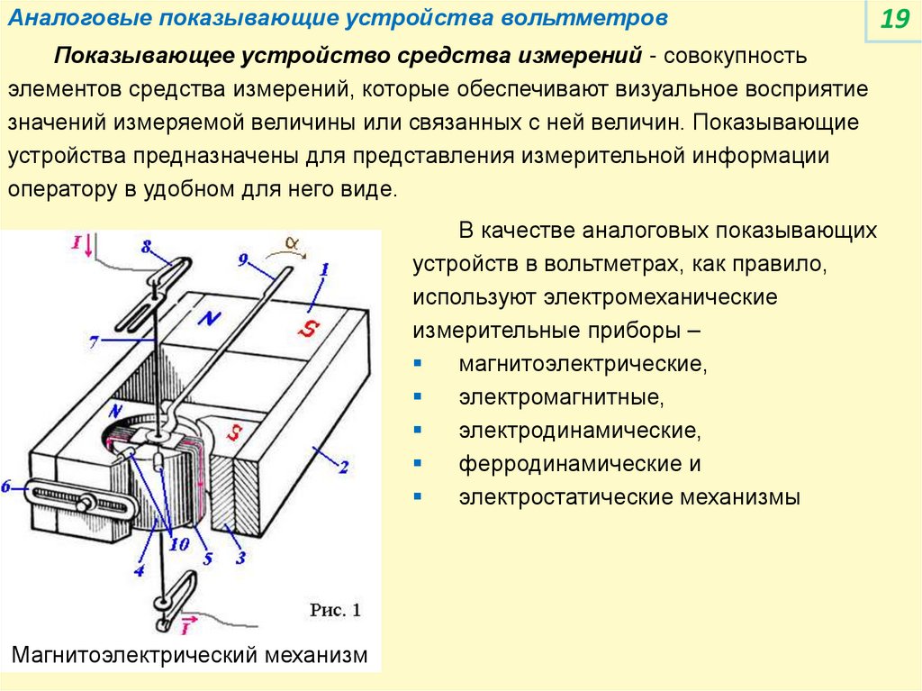Аналоговые показывающие устройства вольтметровПоказывающее устройство средства измерений - совокупность