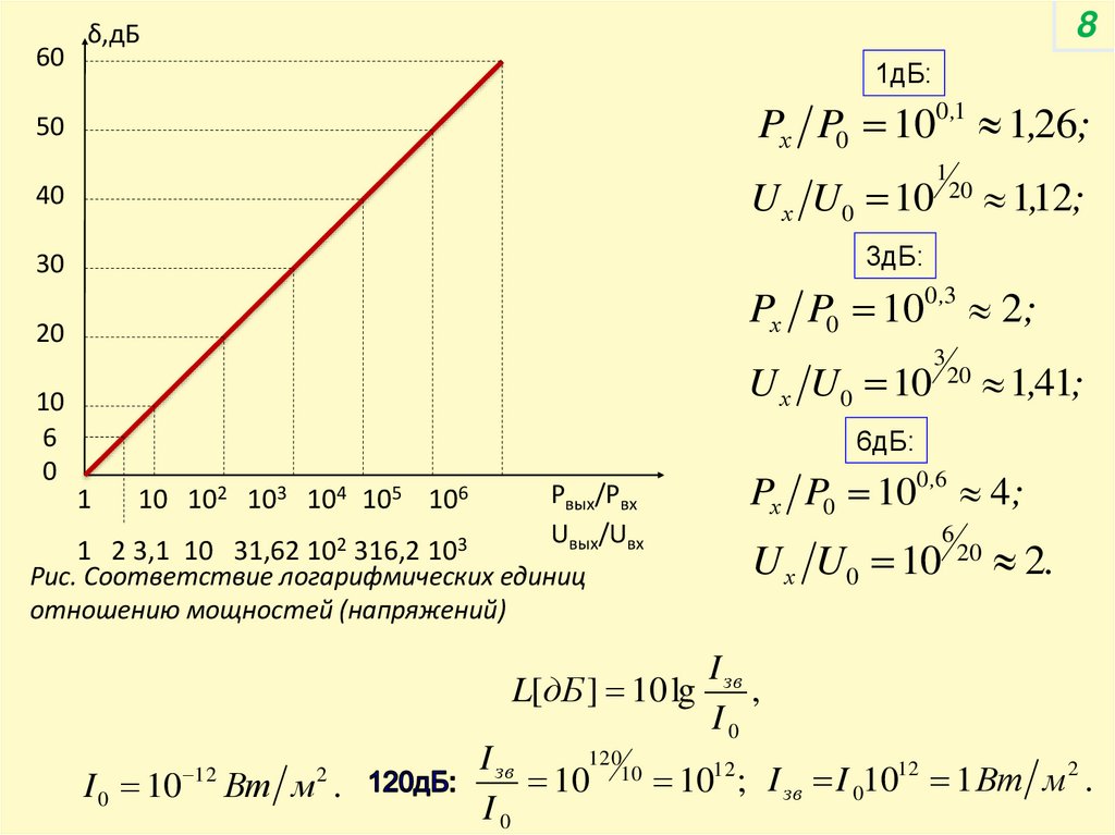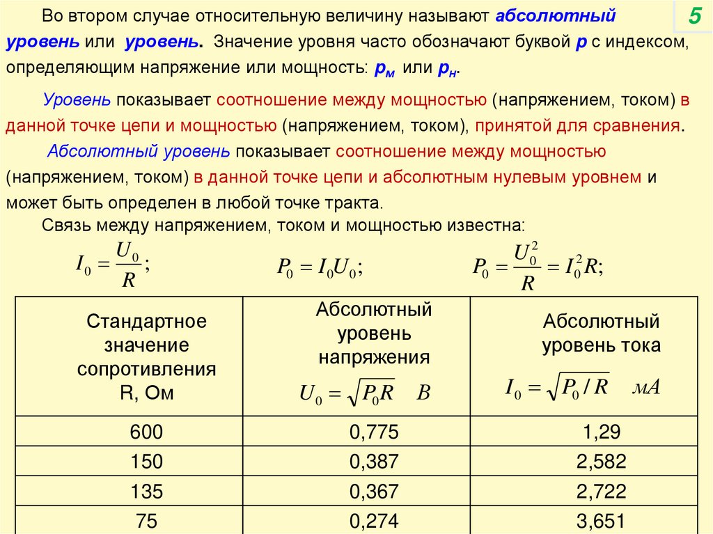 Уровень показывает соотношение между мощностью (напряжением, током) в