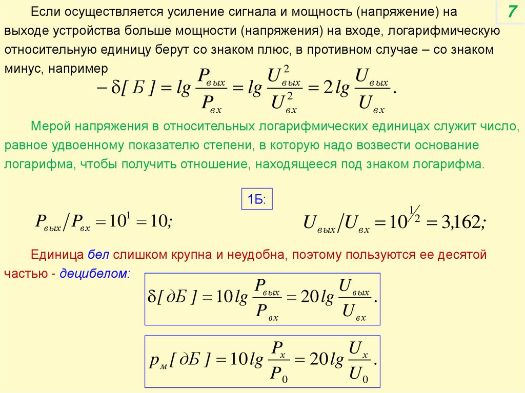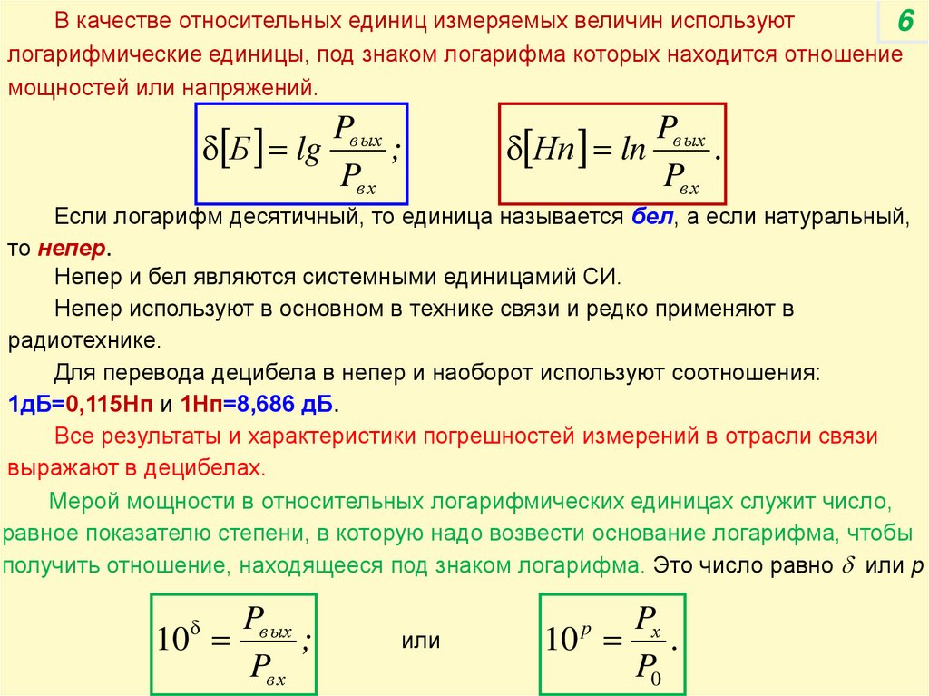 логарифмические единицы, под знаком логарифма которых находится отношение