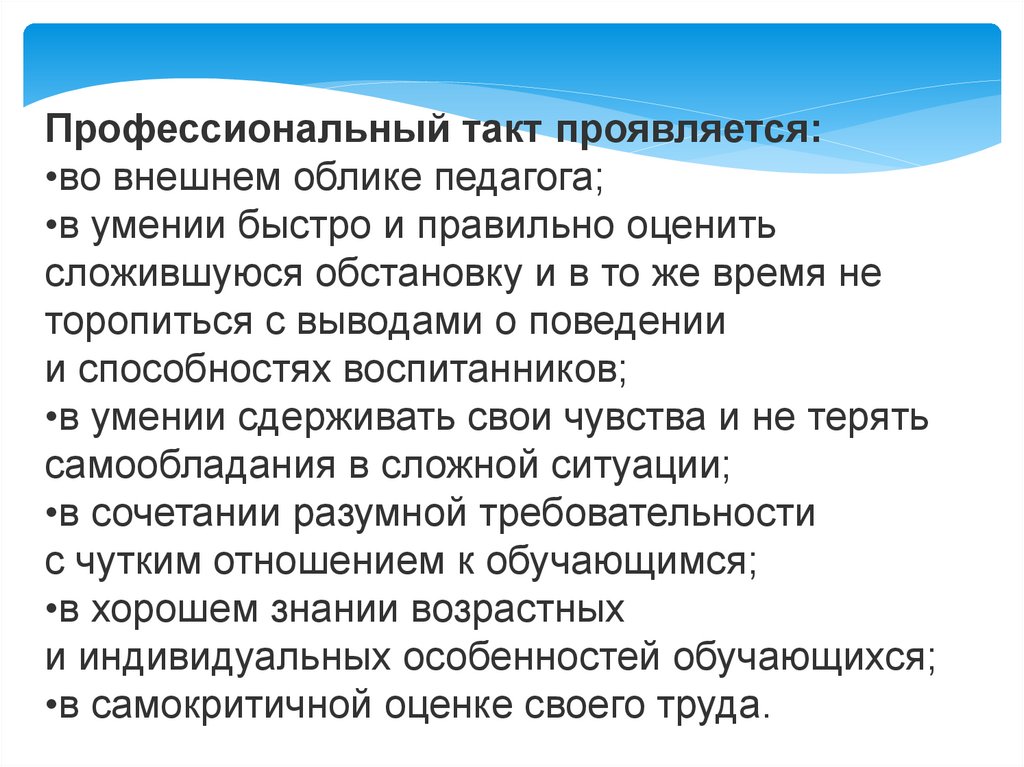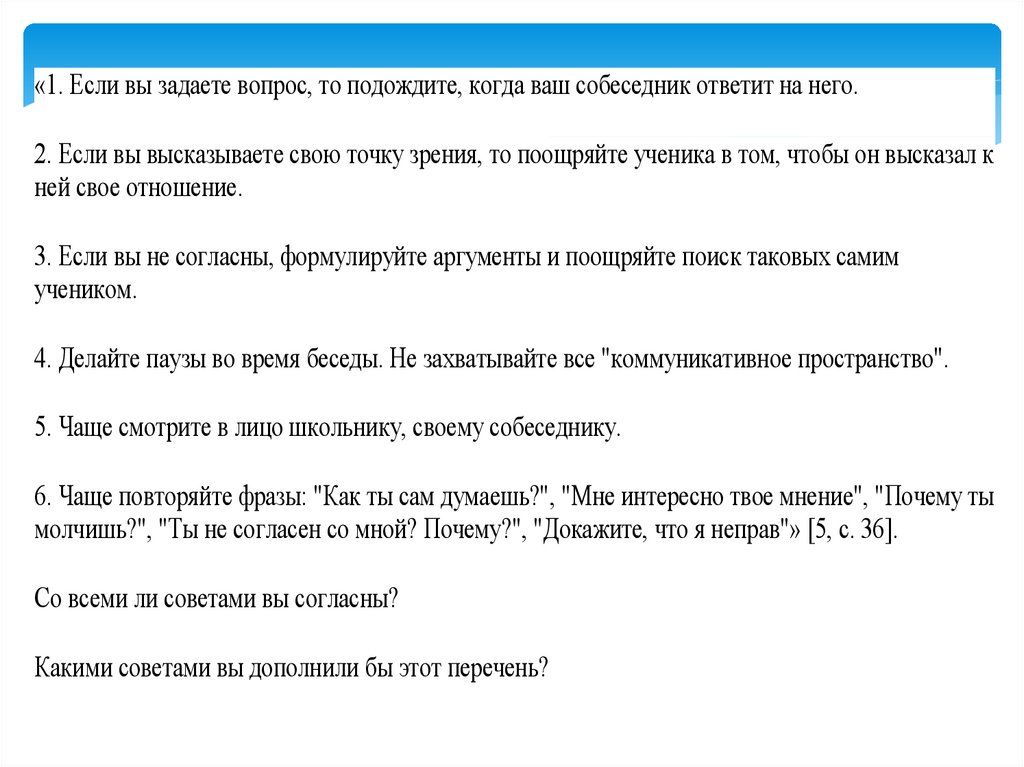5. Готовность к профессионально-педагогическому общению, которое предполагает:
