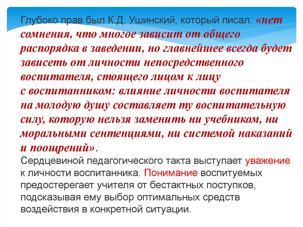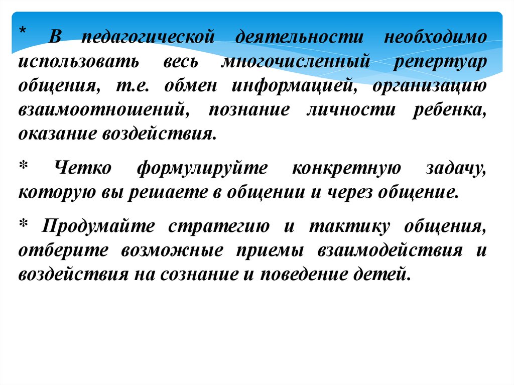 * В педагогической деятельности необходимоиспользовать весь многочисленный репертуар